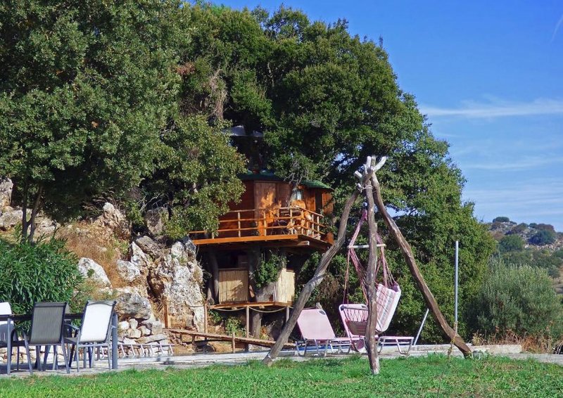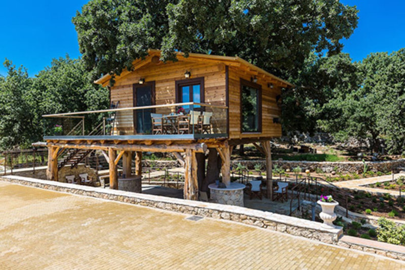 Ανάμεσα σε ελιές και μποστάνια με βιολογικά προϊόντα, υπάρχει ένα ξύλινο δεντρόσπιτο που θα σας μείνει αξέχαστο.