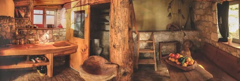 Είναι εξοπλισμένο με ένα διπλό κρεβάτι, αιώρα, μπάνιο, μπαλκόνι. Μια δεύτερη κατοικία είναι ακριβώς κάτω από αυτό, όπου μπορείτε να βρείτε σε δύο επίπεδα την κουζίνα, διπλό κρεβάτι, μπάνιο, τζάκι. Όλα τα ξύλινα έργα είναι φτιαγμένα από ελαιόδεντρα, δίνοντας τα πάντα σε μια ζεστή και ζεστή αισθητική.