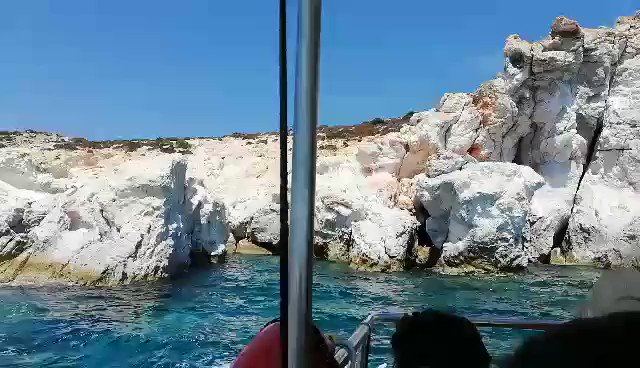 Εμείς, βρεθήκαμε στους φιλόξενους κόλπους της, στους απάνεμους όρμους της και στις κρυφές σπηλιές της με το σκάφος του Βαγγέλη από το λιμάνι της Κιμώλου.