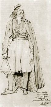 Σουλιώτης αγωνιστής, σχέδιο του Achille Deveria, μαθητή του Delacroix