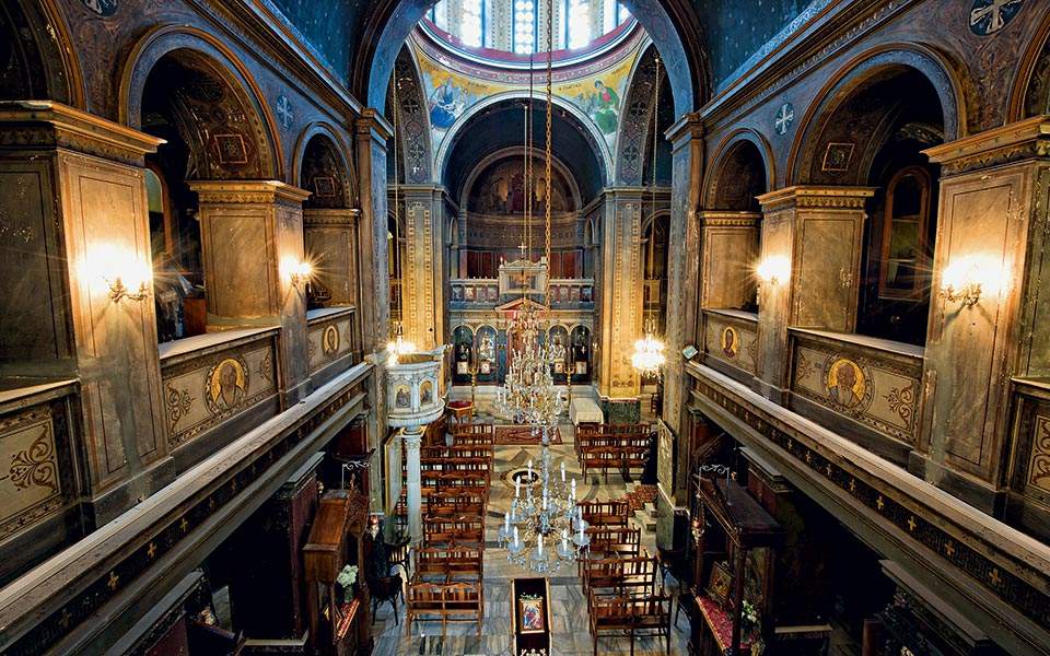Αν φθάσετε έως εκεί, θα σας εντυπωσιάσει, ενδεχομένως, η ίδια η αύρα του ναού, ο οποίος αναφύεται στον μικρό πεζόδρομο της οδού Χριστοκοπίδου με μια σεμνή μεγαλοπρέπεια. Αυτή την περίοδο, η εκκλησία είναι ζωσμένη με σκαλωσιές και αυτό είναι καλό νέο, γιατί ο ιστορικός ναός έχει λαβωθεί από τους σεισμούς του 1981 και του 1999 και χρήζει άμεσης αποκατάστασης. Ωστόσο λειτουργεί με την αγάπη του κόσμου στο πρόσωπο του πατέρα Θεοδόσιου.