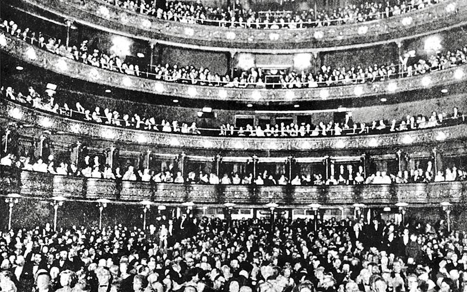 Άποψη του εσωτερικού του επιβλητικού «Θεάτρου Σμύρνης» (1911-14).