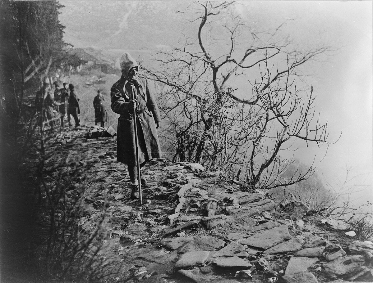 Πορεία στο χιόνι και τη λάσπη του μετώπου.