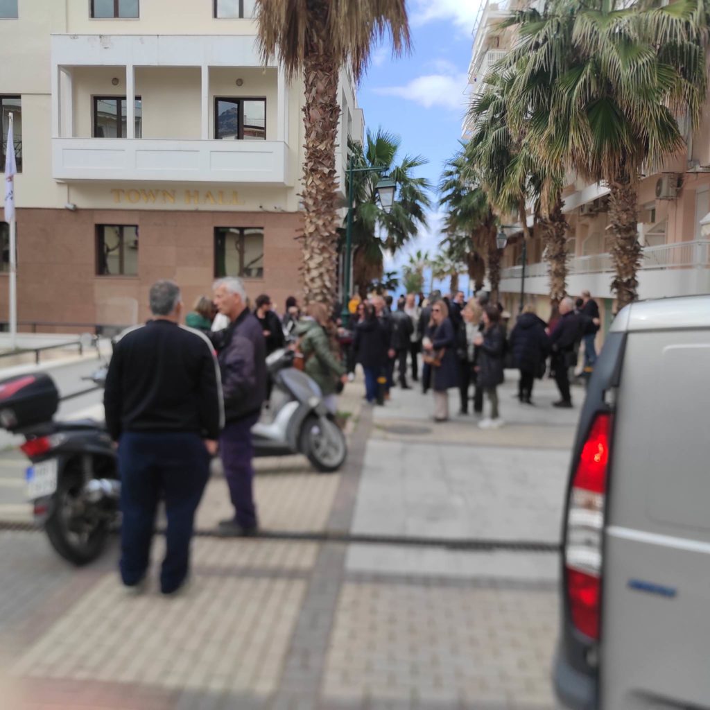 Με ομόφωνη απόφαση του Δημοτικού Συμβουλίου πραγματοποιήθηκε σήμερα, σιωπηρή διαμαρτυρία έξω από το Δημαρχείο Λουτρακίου, εις μνήμην των θυμάτων του τραγικού δυστυχήματος στα Τέμπη.